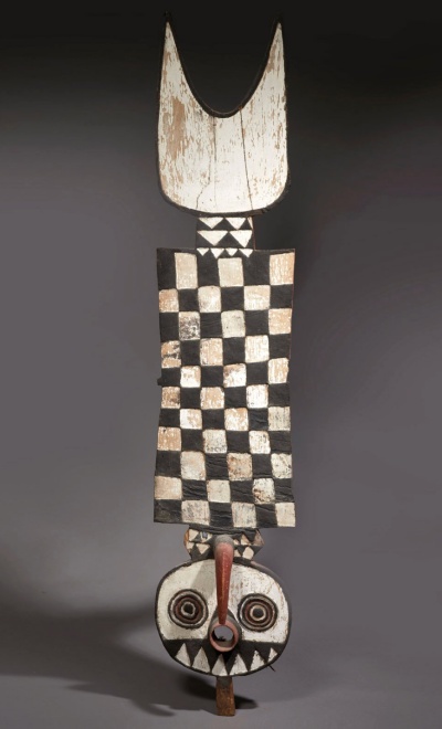 Le masque très impressionnant que constitue le masque Nwantantay, appartient à la catégorie des masques en bois dits« à planche » ou « à lame ». C’est un masque difficile à porter (environ 2 mètres de hauteur) dont la lame est faite d’une pièce de bois « léger » (fromager par exemple) décorée de motifs... Lire la Suite →