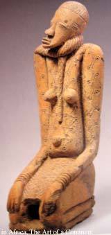 Les terres cuites retrouvées à Djenné Djeno sont essentiellement des représentations humaines intégrant parfois des éléments zoomorphes. L’image de la femme enceinte est associée à celle du serpent rappelant les mythes de fécondité mais aussi d’immortalité…