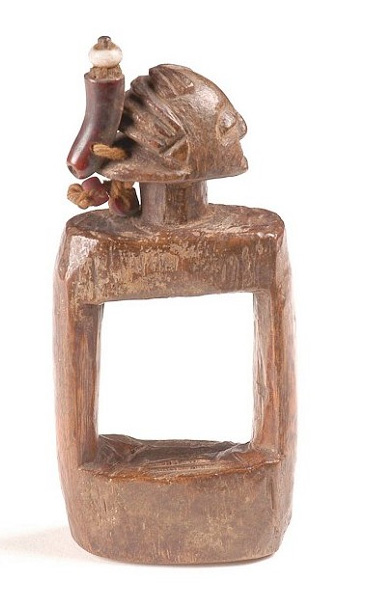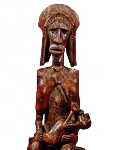 Ne cherchez pas une vive émotion contenue dans cette figure de mère à l'enfant!Les statues de Do Ba (ou Dyo Ba) ne sont pas démonstratrices d'affection maternelle. Elles sont les représentantes de la mère accomplie et à cet égard, possèdent des insignes de pouvoir: Le siège à dossier sur lequel elles sont assises (longtemps on... Lire la Suite →