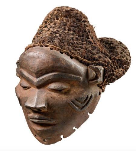 Les masques MBUYA, c’est-à-dire en principe les masques en bois, ont tous en commun une visage triangulaire, un nez plus ou moins retroussé, des arcades sourcillères proémininentes, souvent des tresses qui se dressent sur la tête et dans tous les cas des formes très géométrisées.