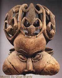 Une sculpture du royaume de Bamendu en pays Bamiléké, conservée au Pavillon des Session au Musée du Louvre. Masque important par ses dimensions, il représente un visage surmonté d’une coiffure sphérique ajourée avec des motifs de lézards, marqué par un front proéminent, des joues gonflées, des yeux en amande.Certaines interprétations y distinguent la représentation d'un... Lire la Suite →