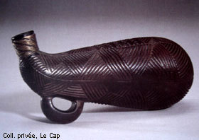 Les appui-tête Shona semblent être en usage depuis fort longtemps; probablement depuis l'époque de Mapungubwe (XIIème siècle). Quelques sites archéologiques du Zimbabwe ont apporté la preuve que certains devaient être recouverts d'or et plusieurs sources Shona indiqueraient que les hommes importants étaient enterrés avec leur appui-tête. (in Témoins de pierre. Passé et Présent, Africa Museum,... Lire la Suite →