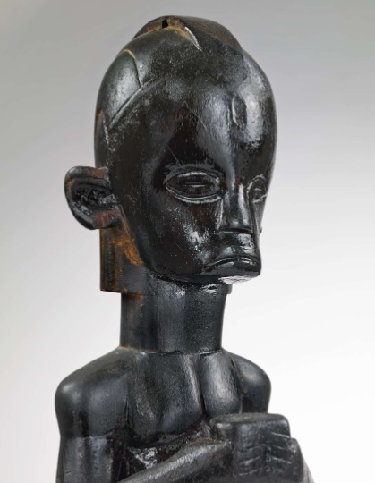 Au sud-est du Nigeria, l'état de la Cross River est peuplé par les Oron, les Efik et les Ejagham. Les Oron étaient, entre autres, réputés pour leurs sculptures : les figures Ekpu réalisées à l'occasion du décès d'un notable. Ces statues portent toutes une barbe (souvent tressée mais ici manquante au niveau d'un long bouc),... Lire la Suite →