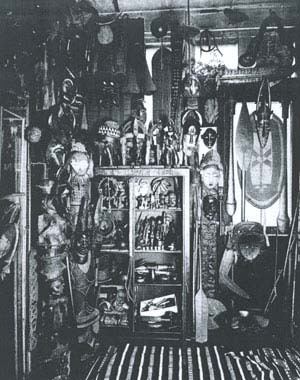 Il y avait, depuis la fin du XIXème, Antony Innocent Moris, celui qu’on appelait le Père Moris. Après une carrière militaire aux Indes et Tonkin, il loua en 1913 une boutique rue Victor Massé dans le 9ème ; son amie Marie y vendait de la brocante. Il se mit, quant à lui, à vendre des tissus persans. Cette année-là, semble-t-il, il acheta son premier masque africain.