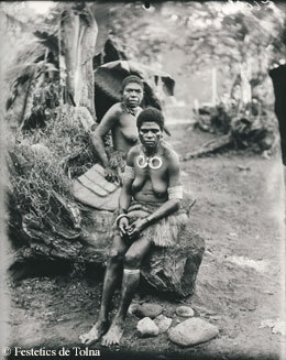 Photo 2 : Femme du chef de Rhanoun portant la dent tournée du cochon, bijou de grande valeur dans l’île d’Ambrym © Rudolf Festetics de Tolna, Museum d’Ethnographie de Budapest.