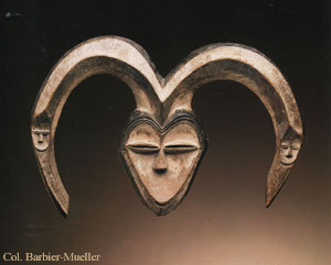 Poursuivant notre tour du Gabon par le biais des masques, nous rencontrons dans le Nord-Est du pays, le peuple Kwélé dont la production de masques variés et surprenants se faisait essentiellement dans le cadre du Bwété (cf. Kota). Ce sont des représentations de visage humain, généralement blanchi, qui présentent une forme à cornes recourbées... Lire la Suite →