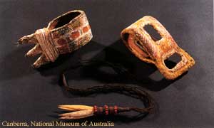 Ci-dessous des bracelets et pendentif Tiwi :