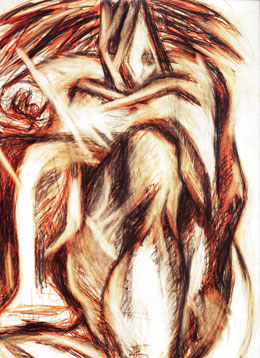 Mais il était sensible aux mêmes préoccupations que les Surréalistes…et je peine à trouver dans ces imbrications d’hommes et d’animaux, d’hommes et de femmes ; des symboles chamaniques ou des rituels de fertilité.