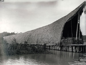 Photo 2 : Maison des hommes, delta de la Purari, Golfe de Papouasie, photographie de Frank Hurley, début des années 1920, in Qu’est-ce qu’un corps ?, 2006, dir. Stéphane Breton, Ed. Flammarion, Musée du Quai Branly.