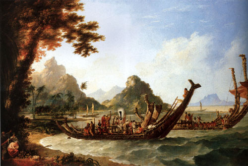 C'est par ce célèbre tableau de William Hodges, que débute la superbe exposition James Cook et l'exploration du Pacifique, à Bonn en ce moment.Cette grande toile longue de près de 3 mètres fut peinte à Londres en 1777 et semble décrire le départ d'embarcations de guerre d'un port de Tahiti. Tout semble à la fois... Lire la Suite →