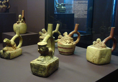 L’être à crocs et sa victime… peut-être une des céramiques des plus touchantes (et pourtant terrible) visibles actuellement au musée du Quai Branly dans le cadre de l’exposition Sexe, mort et sacrifice dans la religion mochica, mais aussi des moins dures et des moins crues.