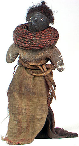 À la frontière avec la Namibie, les peuples Kwanyama réalisent des figures de fertilité en terre crue ou à l’aide d’une branche fourchue, vêtues et parées de perles, objets de toutes les attentions des jeunes filles.
