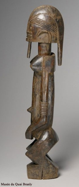 Ainsi que je l’annonçais dans le précédent billet, les sculptures Dogon les plus connues des Occidentaux sont probablement celles dites de style Bombou-Toro du centre de la falaise sud, d’après la désignation établie par Hélène Leloup (in Statuaire Dogon, 1994).
