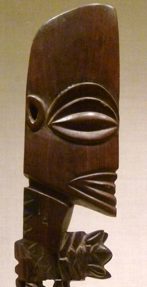 À droite, se distingue l’extrémité d’un dieu-bâton des îles Cook.