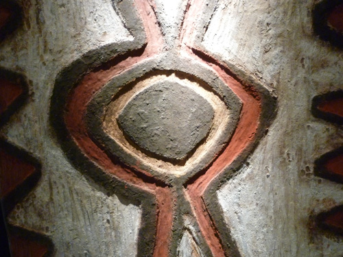 Formes et couleurs jouent sur ces boucliers mélanésiens. Rien d'abstrait.Il s'agit là d'une esthétique de la guerre (conflits pour le contrôle de terres, pour le pouvoir sur les réseaux d'échanges et les alliances matrimoniales), ou encore une esthétique de manifestations d'apparat (le bouclier devient signe ostentatoire). Etait-il outil de protection ou objet de prestige ?... Lire la Suite →