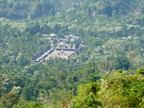 Le village de Gurusina, au cœur de l'île de Florès, illustre la culture Ngadha, marquée par une hiérarchie clanique complexe. Les maisons abritent plusieurs familles et sont ornées de ngadhu pour les ancêtres masculins et de bhaga pour les ancêtres féminins.