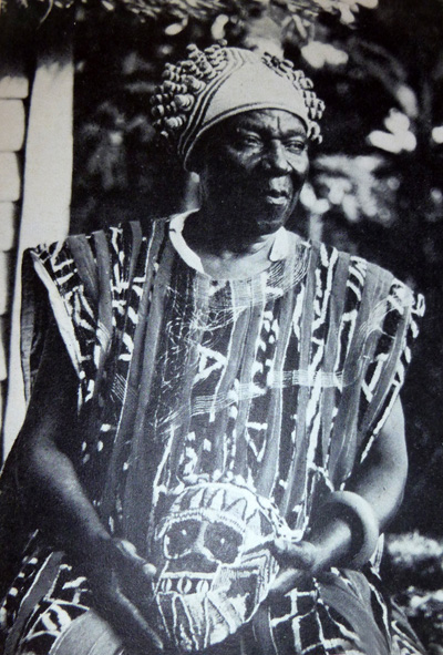 Photo 3 : Le Fon N’Kette tenant dans sa main l’atwonzen de son ancêtre (P. Harter).