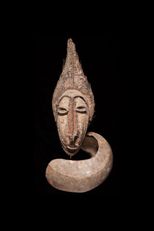 Des visages avec des yeux protubérants, rehaussés de pigments et entourés de plumes de casoar sont généralement représentés.