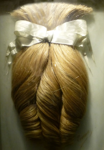 Alors, au fil des salles, ce qui n’aurait pu être que frivolité laisse place à l’évocation des rites mortuaires ; les cheveux des deuilleurs ou des ennemis se substituent aux boucles des belles insouciantes…