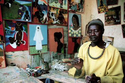 On peut admirer ci-dessus, l’artiste Lo Ba au travail et ci-dessous, l’artiste Mor Gueye.