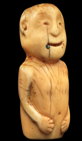 À l'occasion de TEFAF 2013, Anthony Meyer présentera des oeuvres d’Art Océanien et d’Art Eskimo Archaïque.Parmi ces dernières, on trouve cette merveilleuse amulette de chamane, ou iinruq (iinrut), représentant un demi-personnage orné de tatouages sur la poitrine et dans le dos. Le visage souriant montre un labret en verre bleu.Ce type d'amulette représente des esprits... Lire la Suite →