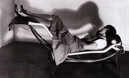 Photo 2 : Charlotte Perriand dans la chaise longue B306 dessinée en 1928 en collaboration avec Le Corbusier et Pierre Janneret, photo in 100 ans de Design, 2007, © T.D.R.