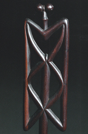 Les oeuvres d’Afrique de l’Est sont sur ce sujet particulièrement remarquables. Et du coup, le résultat de la vente du bâton d’origine Nguni de William W. Brill dément mon affirmation sur le « moindre intérêt » des collectionneurs pour ces oeuvres, puisque estimé $12,000 – $18,000, il fut adjugé $126,000 ! Ce bâton assez grand, à la pointe très abstraite, suggérant un couple enlacé, a dû séduire un amateur de formes contemporaines.