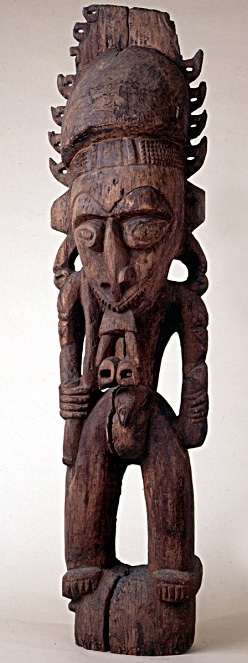 Ces images monumentales d’ancêtres, appelées telum, constituaient des éléments très importants de la vie cultuelle. On pense qu’elles sont antérieures aux réalisations du Golfe Huon et de nombreuses oeuvres des régions du Sepik et qu’elles ont probablement influencé ces arts.
