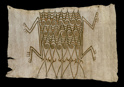 Photo 2 : Barkcloth maro Saboiboi, Lake Sentani, Papua, Indonesia, 19th–20th century, Barkcloth. colour pigments, 129 x 187 cm, Basel: Museum der Kulturen (VB6658) © Museum der Kulturen Basel, Photo: Peter Horner.