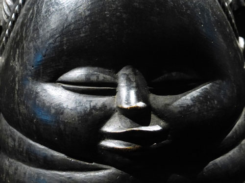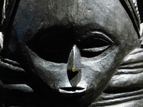 Impression d’intériorité et de sérénité, grâce de courbes généreuses, coiffures élaborées, brillance de la couleur noire luisant; telles sont les caractéristiques communes de ces imposants masques-heaumes.