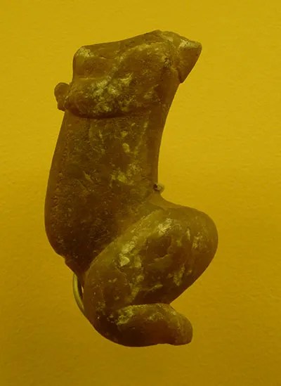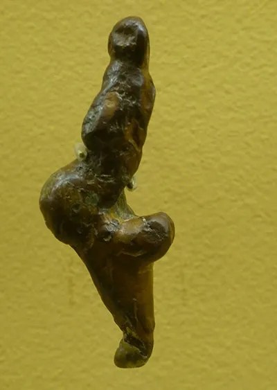 La statuette féminine de Montpazier nous surprend aussi par ses rondeurs plus abruptes, ses seins toujours imposants mais plats par contraste à la saillie très prononcée des fesses, le tout dans un mouvement important de cambrure de reins. Toutes des images visiblement en lien avec la fécondité !
