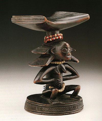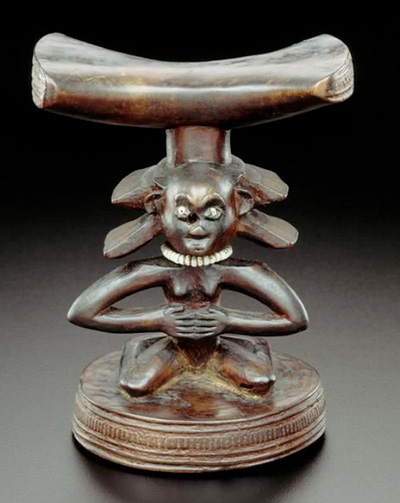 Le premier appuie-tête connu fut collecté en 1901 par Brissoni et se trouve au Museo di Antropologia e Etnologia de Florence (ci-dessus) et le second, collecté par leo Frobenius en 1904 est exposé au Staatliche Museen zu Berlin (ci-dessous).