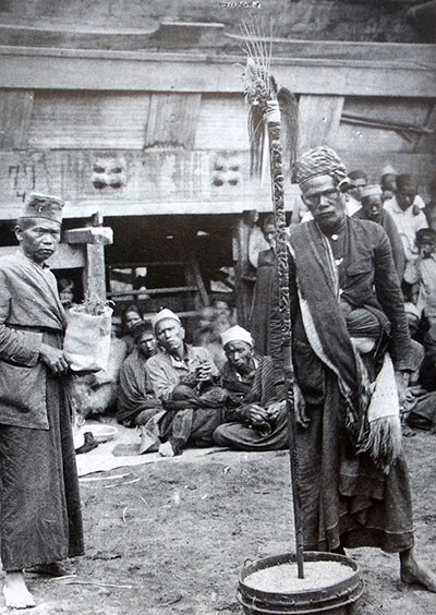Cet animal mythique reproduit sur les façades de maisons mais aussi sur de nombreux objets appartenant au datu est probablement l’image du naga padoha, cette divinité de la mort mais aussi du renouveau pour les anciens Batak.