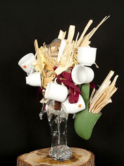 Peut-être est-ce en les regardant, en essayant de comprendre ce qui est de l’ordre de l’indicible que Pascale Marthine-Toyou a conçu ses Poupées Pascale ? Quoi de plus limpide que le cristal ?… et c’est justement ce matériau que l’artiste choisit pour en faire le noyau de ses propres amalgames !