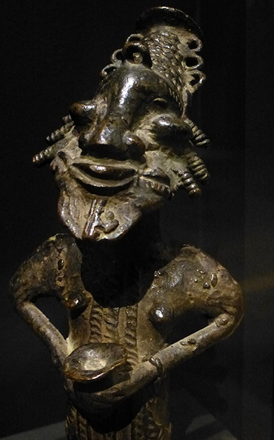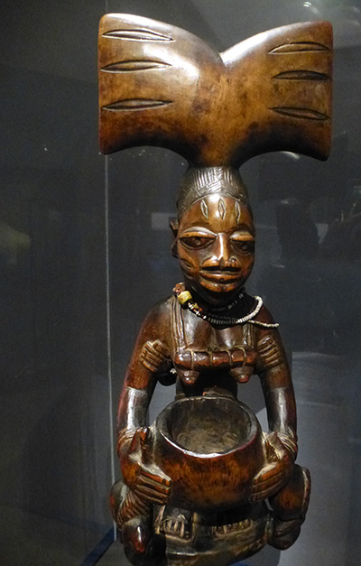 Parmi les oeuvres exposées, j’ai ainsi choisi les porteuses ou porteurs de coupe ; certains objets me semblant trop éloignés du coeur de la thématique, comme par exemple les Tyi wara liés à la bonne manière de cultiver la terre ou encore les objets des datu Batak que j’ai déjà évoqués.