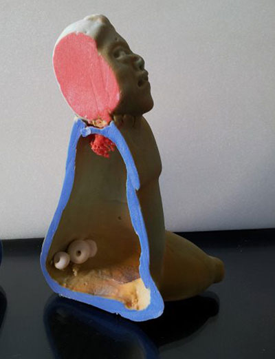 On a ainsi toute l’information à la fois intérieure et extérieure à l’objet et l’imprimante 3D va permettre de réaliser cette figurine, de placer les perles…
