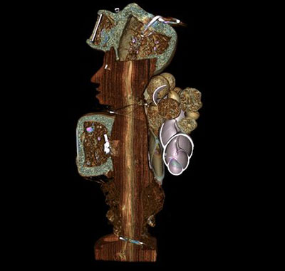 Ces innovations dans le domaine de l’imagerie appliquée à la recherche muséale seront illustrées dans la prochaine installation à l’Atelier Martine Aublet du musée du Quai Branly. Telle cette belle poupée qui révèle au scanner la présence de trois perles bleues…