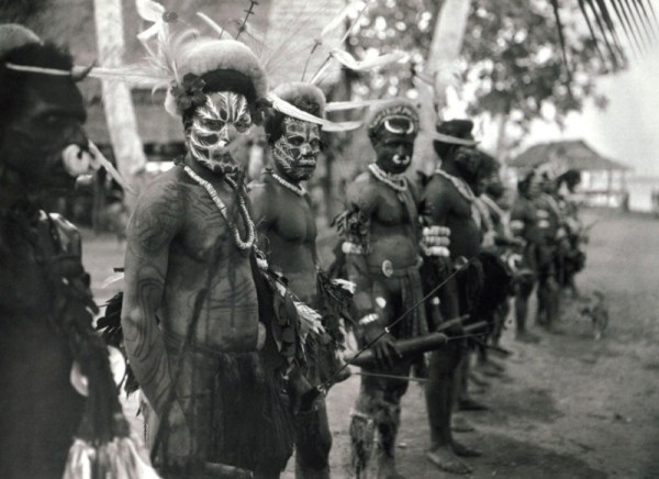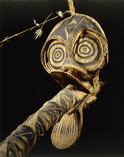 Les Baining de Nouvelle-Bretagne sont réputés pour leurs impressionnants masques en tissu d’écorce, aux formes surréelles, permettant de représenter un esprit lié à un animal, une plante ou une activité associée à la forêt. Ils sortent lors de cérémonies diurnes à l'occasion d'un nouveau cycle de plantation mais aussi de manière très spectaculaire pour des... Lire la Suite →