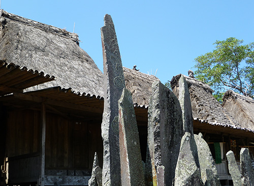 Plus « touristique », le village de Bena possède aussi son lot de mégalithes dressés (ture lenggi) mais malgré leur célébrité,les interprétations demeurent hasardeuses quant à leur relation avec les ancêtres. (photo ci-dessous)