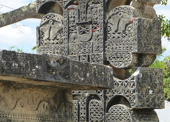 Les tombes et stèles de Sumba, ornées de bijoux comme les mamuli et marangga, témoignent de l'importance des personnalités locales. À l'occasion des funérailles, des Papanggang, esclaves devenus gardiens, portent ces objets sacrés, devenus possessions des Marapu, pour accompagner l'âme des défunts.