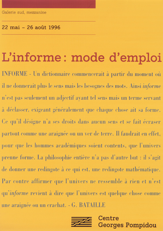 Photo 3 : Affiche Exposition L’informe, Mode d’emploi – Centre Pompidou 1996.