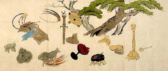 Ces choses-êtres-limites étaient connus dans le folklore médiéval japonais. On les trouve dans les Otogizoshi de l’époque de Muromachi, un ensemble d’histoires courtes illustrées qui mettaient en scène des yokai (esprits ou fantômes). Les Tsukumogami sont des yokai particuliers dont les plus courants étaient des sandales de paille, des luths, des lanternes en papier, des vieux parapluies, des vieilles jarres de saké, des bouilloires… Tout un univers d’objets domestiques dont la biographie, passée leur centenaire, devient tumultueuse !