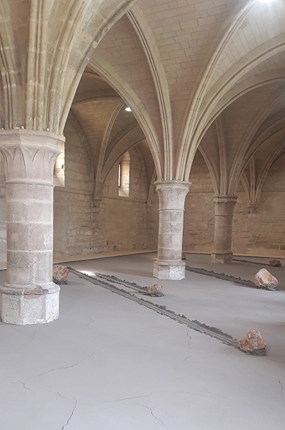 Le déplacement de ces lourdes pierres qui a produit les scarifications de la terre a modelé cet espace. Placés pourtant à l’horizontale, on ressent la pesanteur de ces rochers. J’ai vu dans ces sillons des larmes dont les extrémités se seraient pétrifiées dans leur course silencieuse contre la douleur.