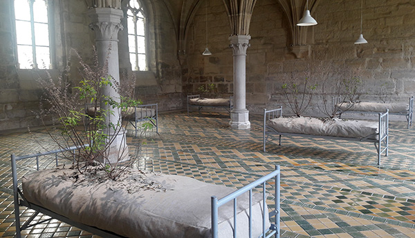 On imagine les moines sur ces lits de l’abbaye eux aussi à l’écart d’un monde, pour le choix d’une vie austère mais voulue.