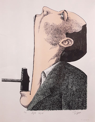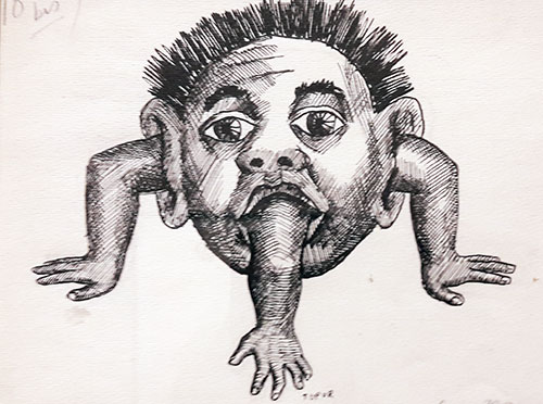 Photo 1 : Dessin de Topo pour l’illustration de Pensées échevelées de Stanislaw Jerzy Lec, 1991.