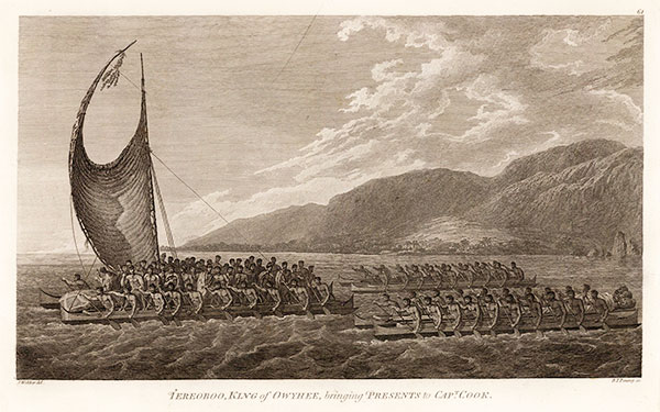 Photo 3 : John Webber, Kalaniopuu, King of Hawaii, bringing presents to Captain Cook, 1779 publié en 1784.