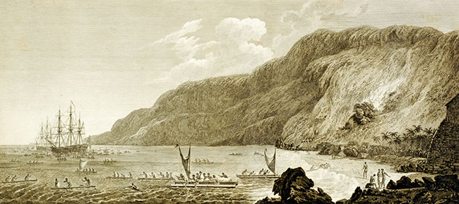 Photo 1 : A View of Karakakooa [today’s Kealakekua], Owhyee d’après John Webber.