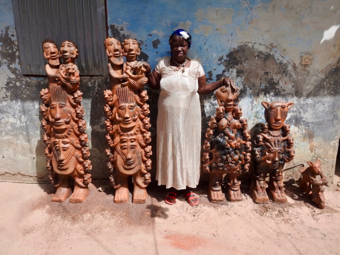La sculptrice sénégalaise, Seyni Awa Camara, ne créé peut-être pas des monstres lorsqu’elle fait surgir de la terre ses personnages aux multiples enfants. L’interprétation simple (ou simpliste) tendrait à croire que c’est la progéniture qu’elle n’a pu avoir ou encore la mémoire de ses frères et soeurs morts à la naissance puisque sa mère a eu à plusieurs reprises des triplés. Ce n’est pas sans faire penser à la réalisation d’Ibeji dans la culture Yoruba.