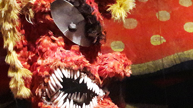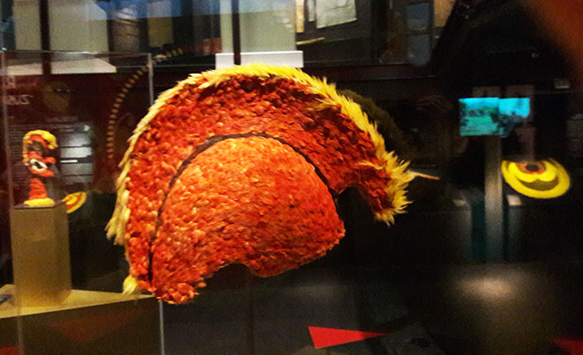 Plumes rouges, plumes jaunes et noires, canines de chiens, mais aussi dents de sangliers et de requins tels sont les matériaux les plus reconnaissables des artefacts traditionnels d’Hawaii.