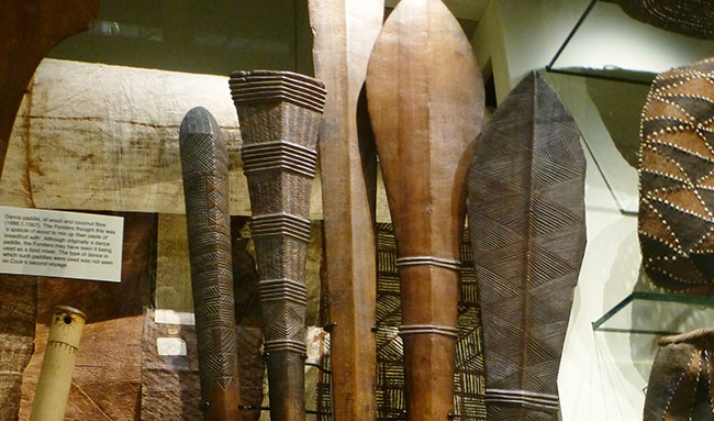 Il existe ainsi dix massues provenant des voyages de Cook conservées au Pitt Rivers Museum et mentionnées dans le Catalogue of curiosities.